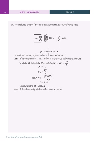 19. วงจรหม้อแปลงอุดมคติ (ไม่คำานึงถึงการสูญเสียพลังงาน) ต่อกับตัวต้านทาน ดังรูป