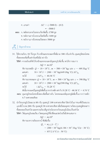 31. ให้ความร้อน 10 กิโลจูล กับเหล็กและทองแดงซึ่งมีมวล 500 กรัมเท่ากัน อุณหภูมิของโลหะ