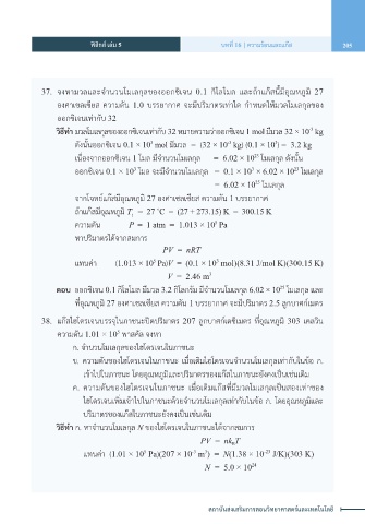 37. จงหามวลและจานวนโมเลกุลของออกซิเจน 0.1 กิโลโมล และถ้าแก๊สน้มีอุณหภูม 27
