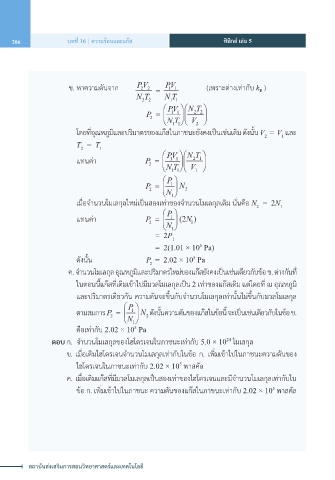 ค. จานวนโมเลกุล อุณหภูมิและปริมาตรใหม่ของแก๊สยังคงเป็นเช่นเดียวกับข้อ ข. ต่างกันท ี ่