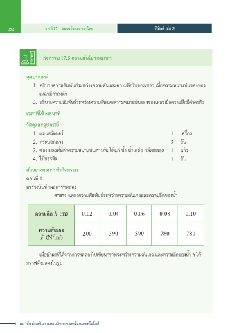 กิจกรรม 17.5 ความดันในของเหลว