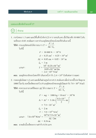 ตอบ มอดุลัสของยังของโลหะที่ทำาเส้นลวดนี้เท่ากับ 2.4 × 10 นิวตันต่อตารางเมตร