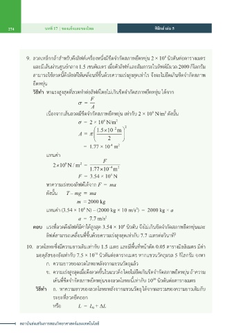 9. ลวดเหล็กกล้าสำาหรับดึงลิฟต์เครื่องหนึ่งมีขีดจำากัดสภาพยืดหยุ่น 2 × 10 นิวตันต่อตารางเมตร