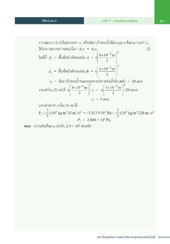 ได้จาก สมการความต่อเนื่อง A v = A v 2 2 2 ( 2)