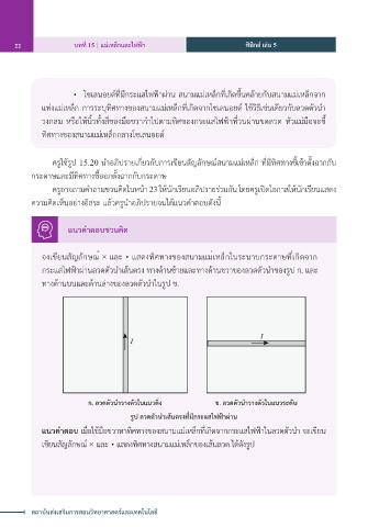 ครูใช้รูป 15.20 นำาอภิปรายเกี่ยวกับการเขียนสัญลักษณ์สนามแม่เหล็ก ที่มีทิศทางชี้เข้าตั้งฉากกับ