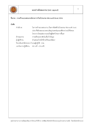 ชื่องาน : งานสร้างแบบสอบถามโครงการ ด้วยโปรแกรม Microsoft Excel 2016