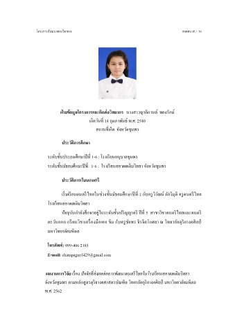 ปจจบันก าลังศกษาอยู่ในระดับชั้นปรญญาตร ปท 5 สาขาวิชาดนตรไทยและดนตร ี