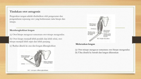 (a) Otot triseps mengecut sementara otot biseps mengendur.
