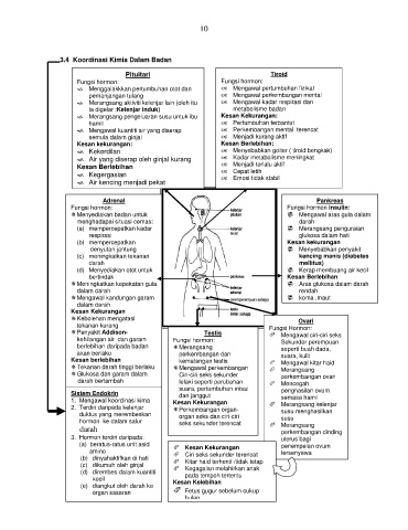 kehilangan air dan garam Fungsi hormon: Mengawal ciri-ciri seks