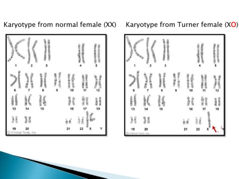 Karyotype from normal female (XX) Karyotype from Turner female (XO)