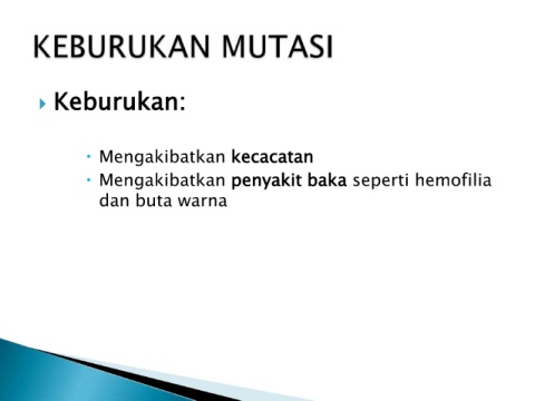 Keburukan: Mengakibatkan kecacatan Mengakibatkan penyakit baka seperti hemofilia dan buta warna