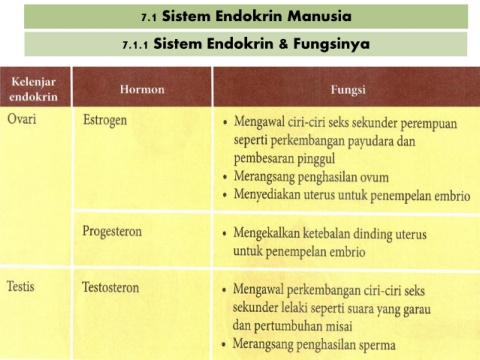 7.1 Sistem Endokrin Manusia 7.1.1 Sistem Endokrin & Fungsinya