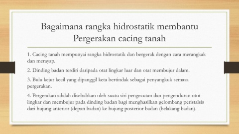 1. Cacing tanah mempunyai rangka hidrostatik dan bergerak dengan cara merangkak