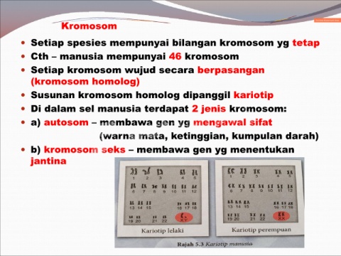 Setiap spesies mempunyai bilangan kromosom yg tetap