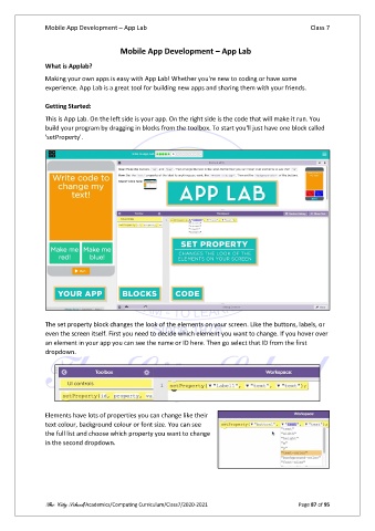 The set property block changes the look of the elements on your screen. Like the buttons, labels, or