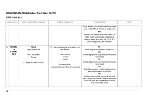 RANCANGAN PENGAJARAN TAHUNAN MUZIK