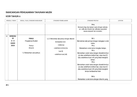 RANCANGAN PENGAJARAN TAHUNAN MUZIK
