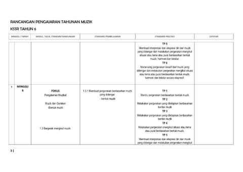 RANCANGAN PENGAJARAN TAHUNAN MUZIK