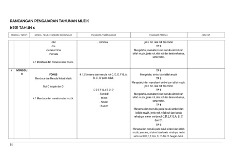 RANCANGAN PENGAJARAN TAHUNAN MUZIK