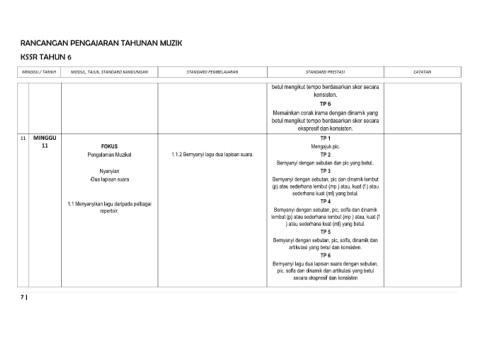 RANCANGAN PENGAJARAN TAHUNAN MUZIK