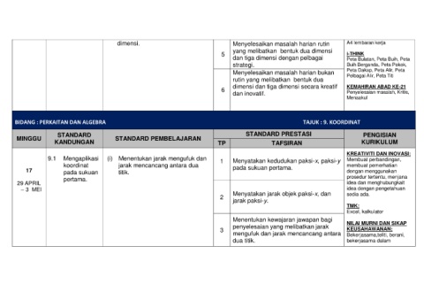 BIDANG : PERKAITAN DAN ALGEBRA TAJUK : 9. KOORDINAT
