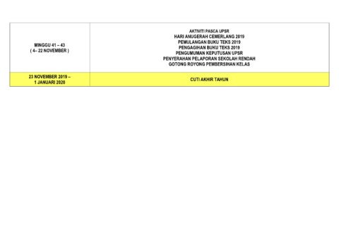 23 NOVEMBER 2019 – CUTI AKHIR TAHUN