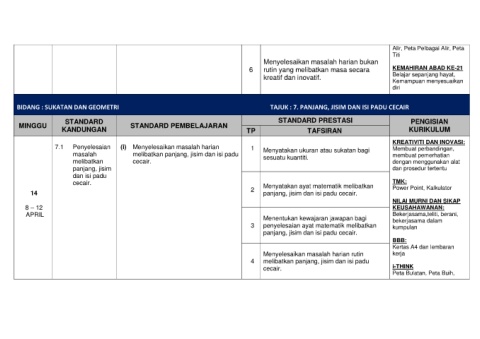 7.1 Penyelesaian (i) Menyelesaikan masalah harian 1 Menyatakan ukuran atau sukatan bagi Membuat perbandingan,