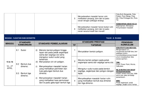 8.1 Sudut (i) Melukis bentuk poligon hingga 1 Mengenalpasti ciri,