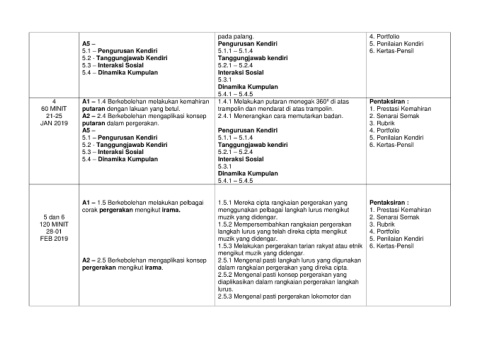 60 MINIT putaran dengan lakuan yang betul. trampolin dan mendarat di atas trampolin. 1. Prestasi Kemahiran