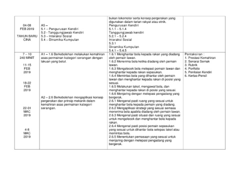 7 – 10 A1 – 1.6 Berkebolehan melakukan kemahiran 1.6.1 Menghantar bola kepada rakan yang diadang Pentaksiran :