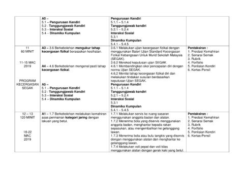 60 MINIT kecergasan fizikal berasaskan kesihatan. menggunakan Bateri Ujian Standard Kecergasan 1. Prestasi Kemahiran