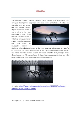 euros. O objetivo é tentar perceber o potencial do CyberDog.