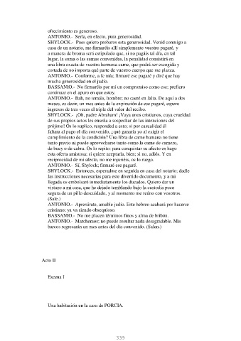 SHYLOCK.- Pues quiero probaros esta generosidad. Venid conmigo a