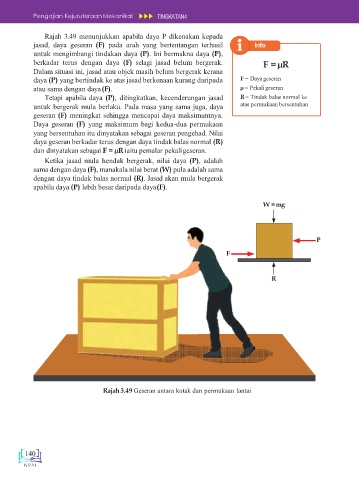 Rajah 3.49 Geseran antara kotak dan permukaan lantai