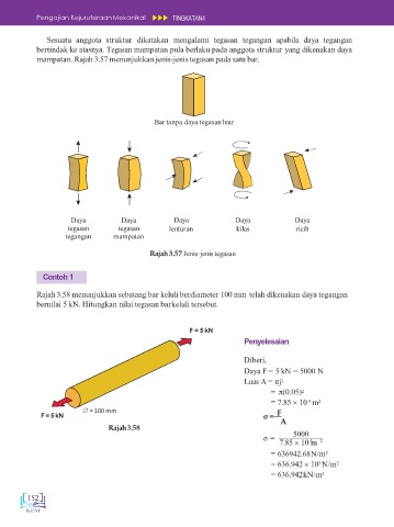 mampatan. Rajah 3.57 menunjukkan jenis-jenis tegasan pada satu bar.