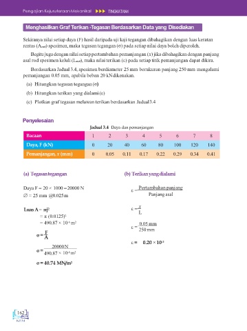 (c) Plotkan graf tegasan melawan terikan berdasarkan Jadual3.4