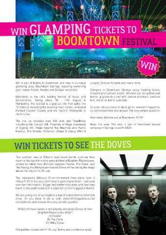 Win a pair of tickets to Boomtown and stay in a unique Jungle), Groove Armada and many more.