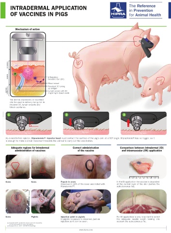 In piglets no papule is observed, just an the adequate needle length tacking into