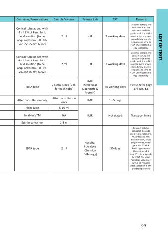 No. Test Unit Type of Specimen Form Container/Preservatives Sample Volume Referral Lab TAT Remark