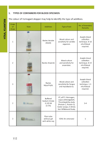 1. TYPES OF CONTAINERS FOR BLOOD SPECIMEN