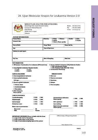 24. Ujian Molecular Anaysis for Leukaemia Version 2.0 REQUEST FORMS 145
