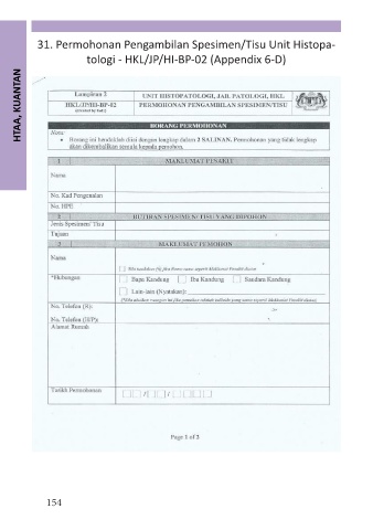 31. Permohonan Pengambilan Spesimen/Tisu Unit Histopa- tologi - HKL/JP/HI-BP-02 (Appendix 6-D) HTAA, KUANTAN 154