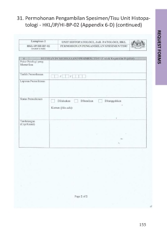 31. Permohonan Pengambilan Spesimen/Tisu Unit Histopa- tologi - HKL/JP/HI-BP-02 (Appendix 6-D) (continued) REQUEST FORMS 155