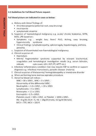 4.3 Guidelines for Full Blood Picture request: