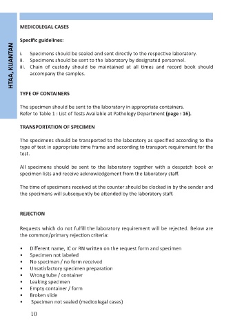HTAA, KUANTAN i. Specimens should be sealed and sent directly to the respective laboratory.