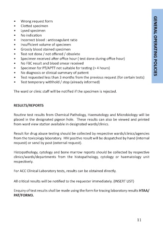 • Insufficient volume of specimen GENERAL OPERATING POLICIES