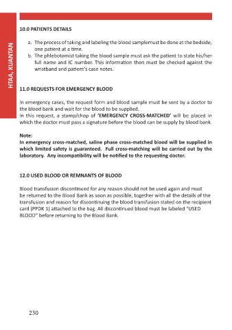 HTAA, KUANTAN b. The phlebotomist taking the blood sample must ask the patient to state his/her