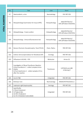 HTAA, KUANTAN 98. Histopathology Examination for tissue (HPE) Histopathology VER.3(Pindaan 9/9/2015) container with 10% Biopsy N/A Urgent : 3 working Refer to chapter 6.0