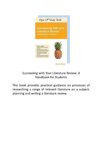 Succeeding with Your Literature Review: A Handbook for Students This book provides practical guidance on processes of researching a range of relevant literature on a subject, planning and writing a literature review.