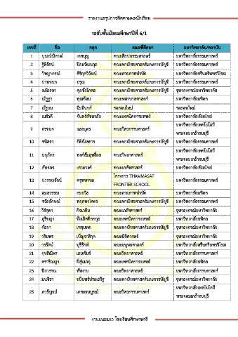 เลขที่ ชื่อ สกุล คณะที่ศึกษา มหาวิทยาลัย/สถาบัน